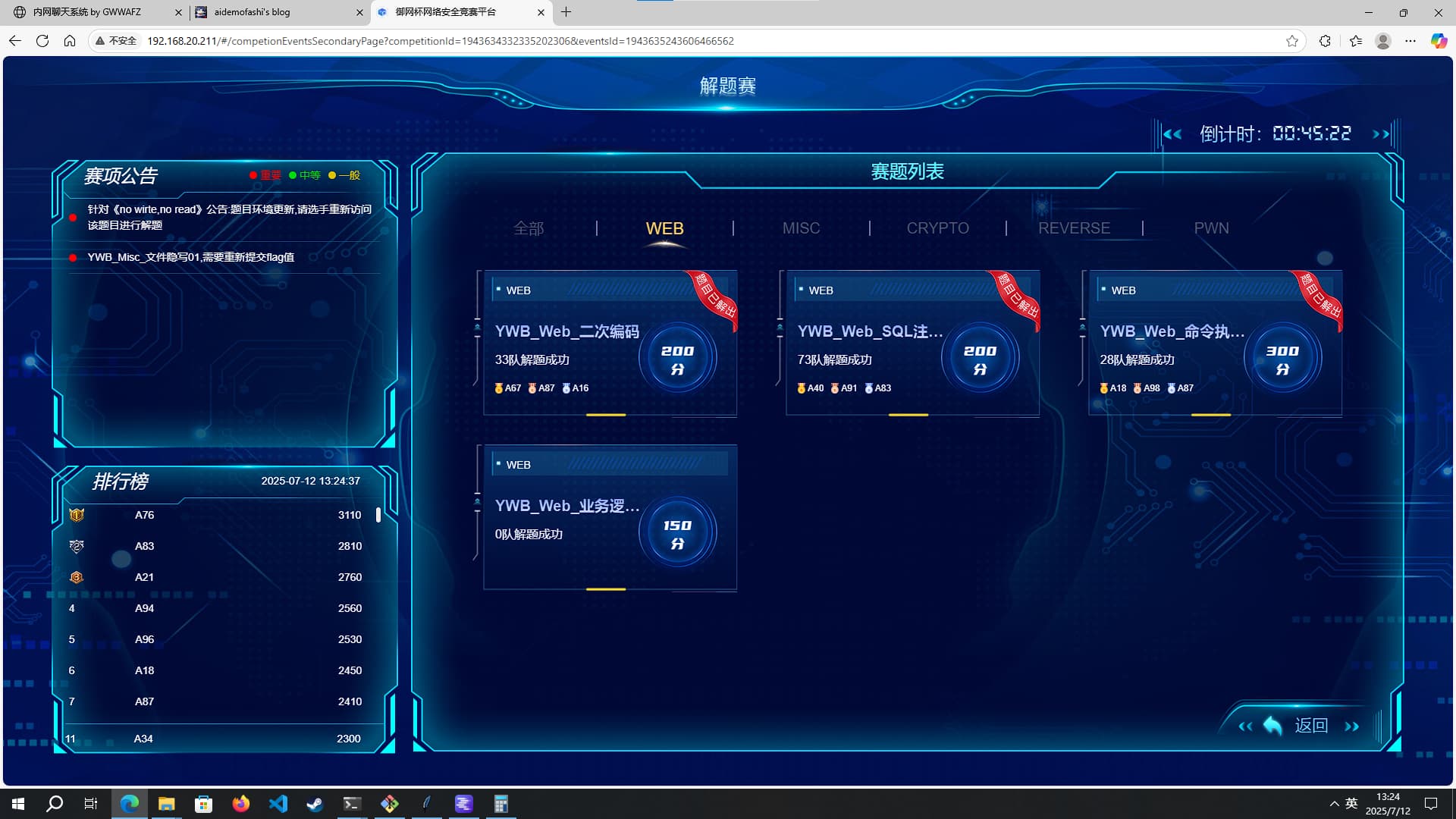 我负责的web方向是解出了三题,还有一题全场暴零。